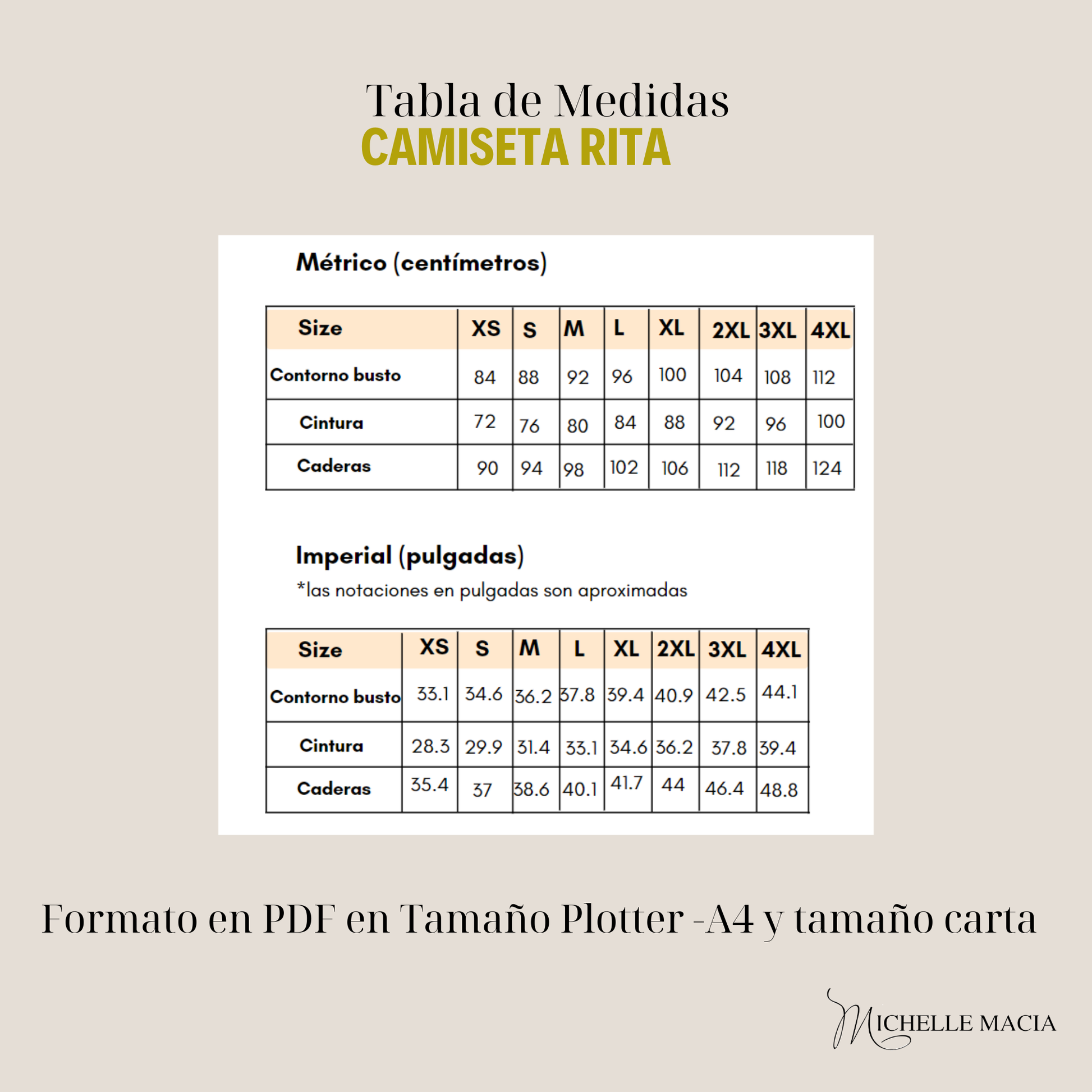 La Camiseta Rita es un básico atemporal de manga corta y cuello redondo, ideal para looks casuales o relajados. Fácil de confeccionar incluso para principiantes, se adapta a diferentes telas como algodón, jersey o rib. Versátil y cómoda, es una prenda que siempre querrás repetir en más colores y estilos.